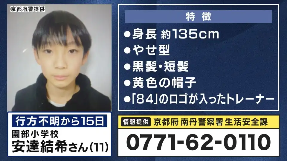 京都府南丹市園部町の山林で今月13日、園部小の安達結希さん(11)が遺体で見つかった事件で、京都府警は16日、死体遺棄の疑いで、安達さんの父親の会社員男(37)を逮捕した。「私のやったことに間違いありません」と容疑を認めている。